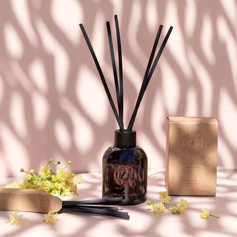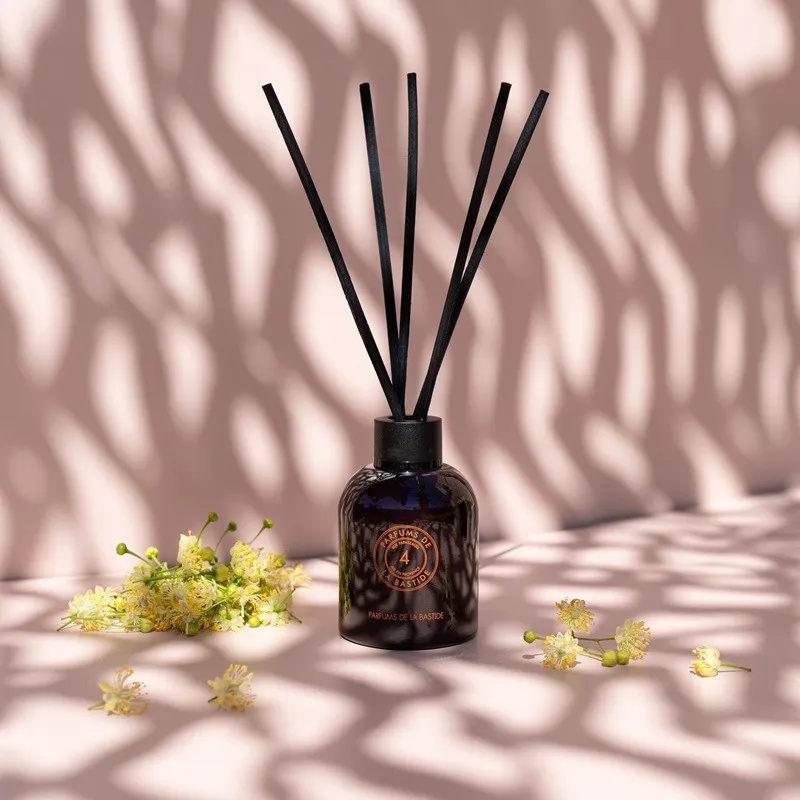 This diffuser brings into your home a tender and luminous floral signature, carried by linden blossom, a touch of citrus, and a soft honey note that rounds out the composition.