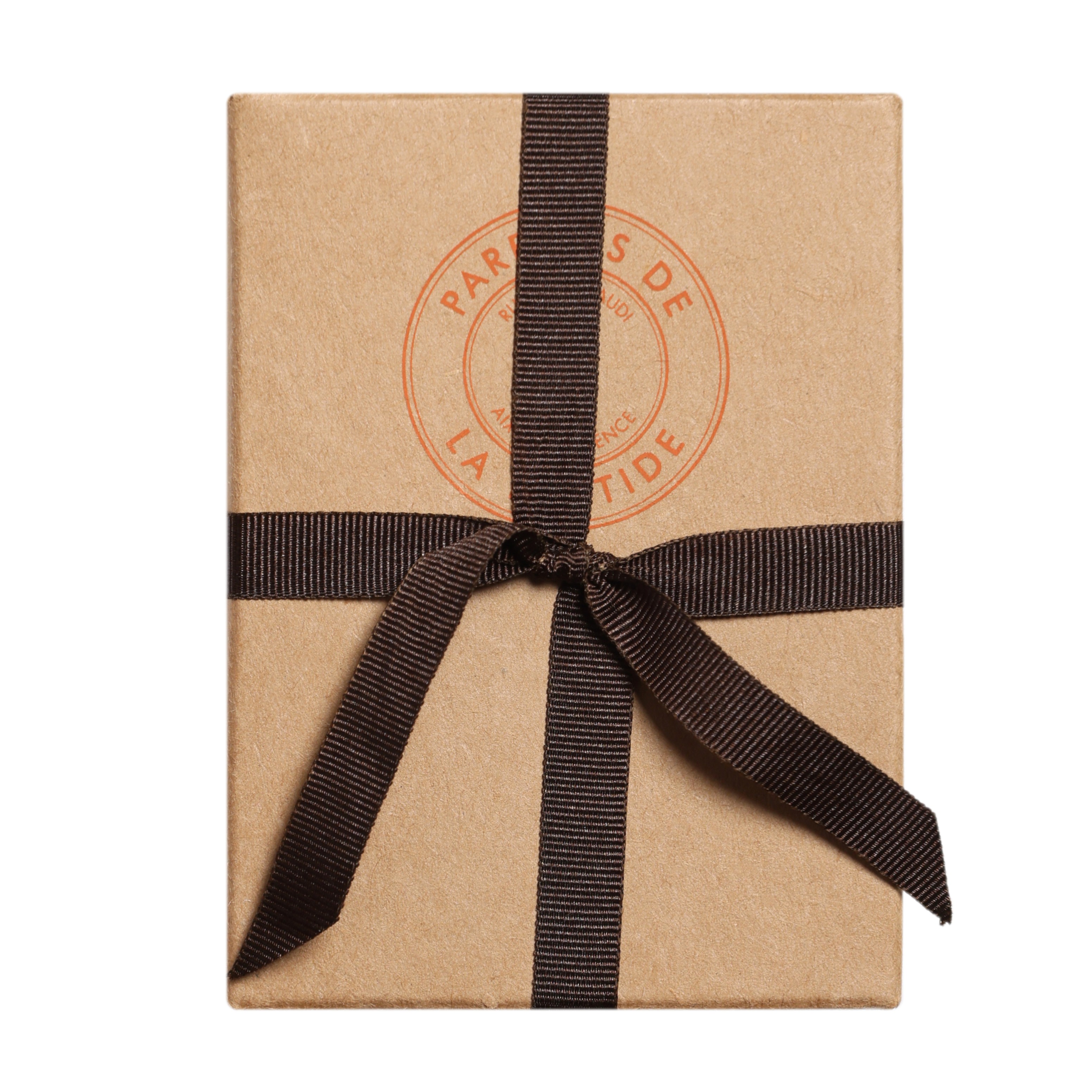 Chaque produit commandé est livré dans son pochon en jute , estampillé du logo à la main, puis emballé dans un papier de soie avant d’être glissé dans sa boîte de livraison kraft.