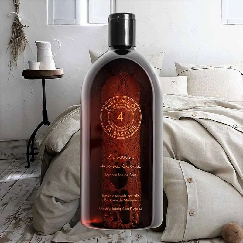 Présentée dans un grand flacon ambré, c’est la lessive naturelle et artisanale par excellence.